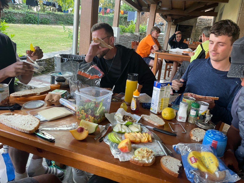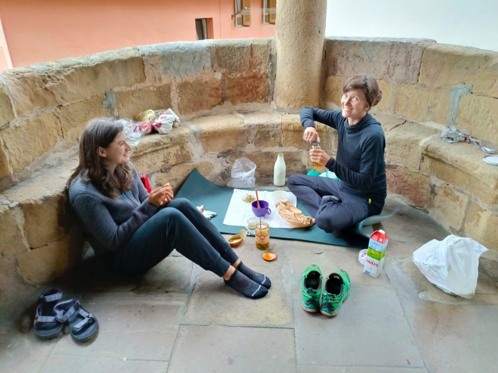 i woke up in the albergue and eduardo had coffee and breakfast things for us.
