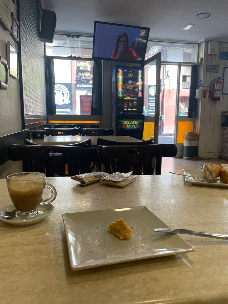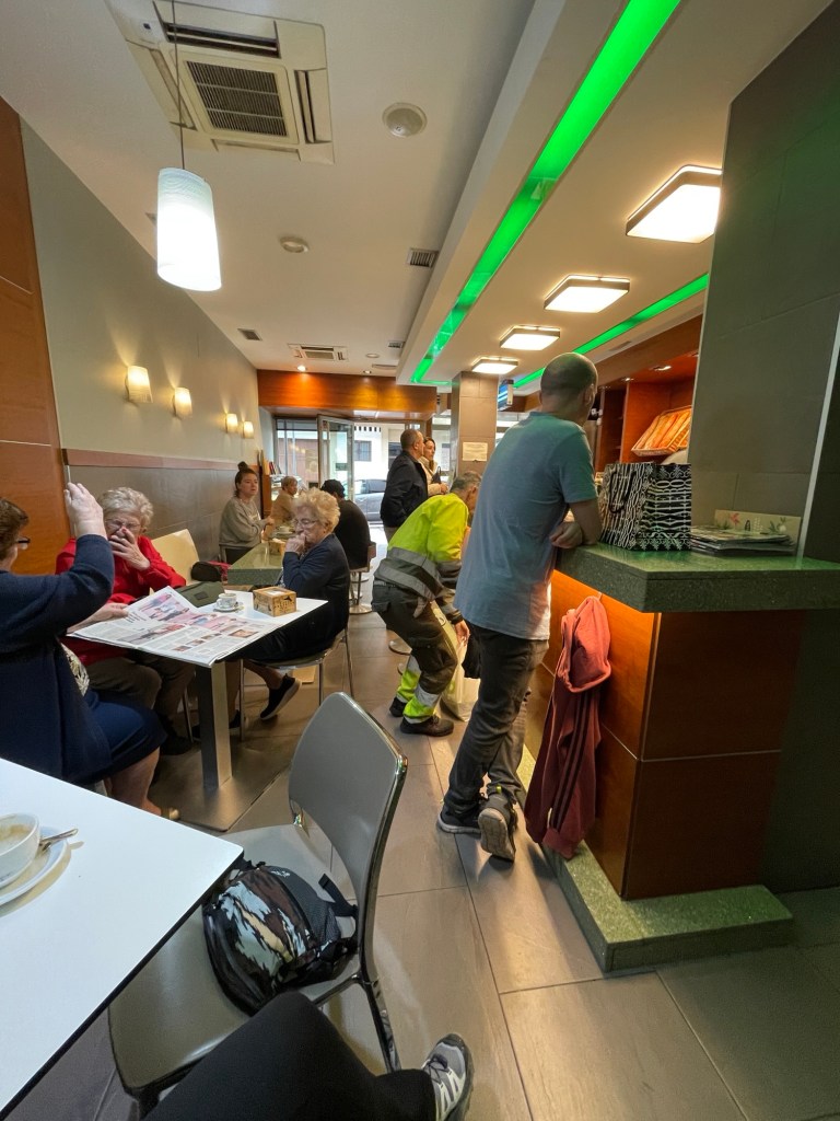 i woke up in the train station albergue to the host turning on lights at 7:00 waking everyone up. everyone was up so fast and packing and on the go! what? we don’t have to leave until 8:30 and nothing in spain is open until 9:00 anyway? i took a little more time and went to the cafe.