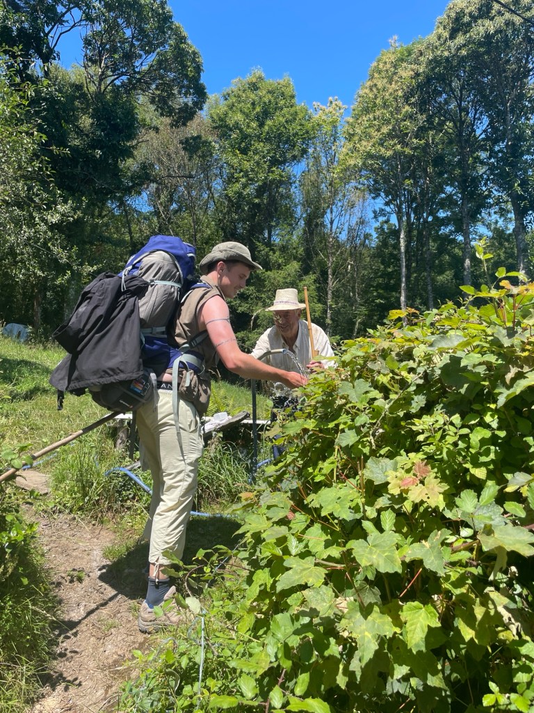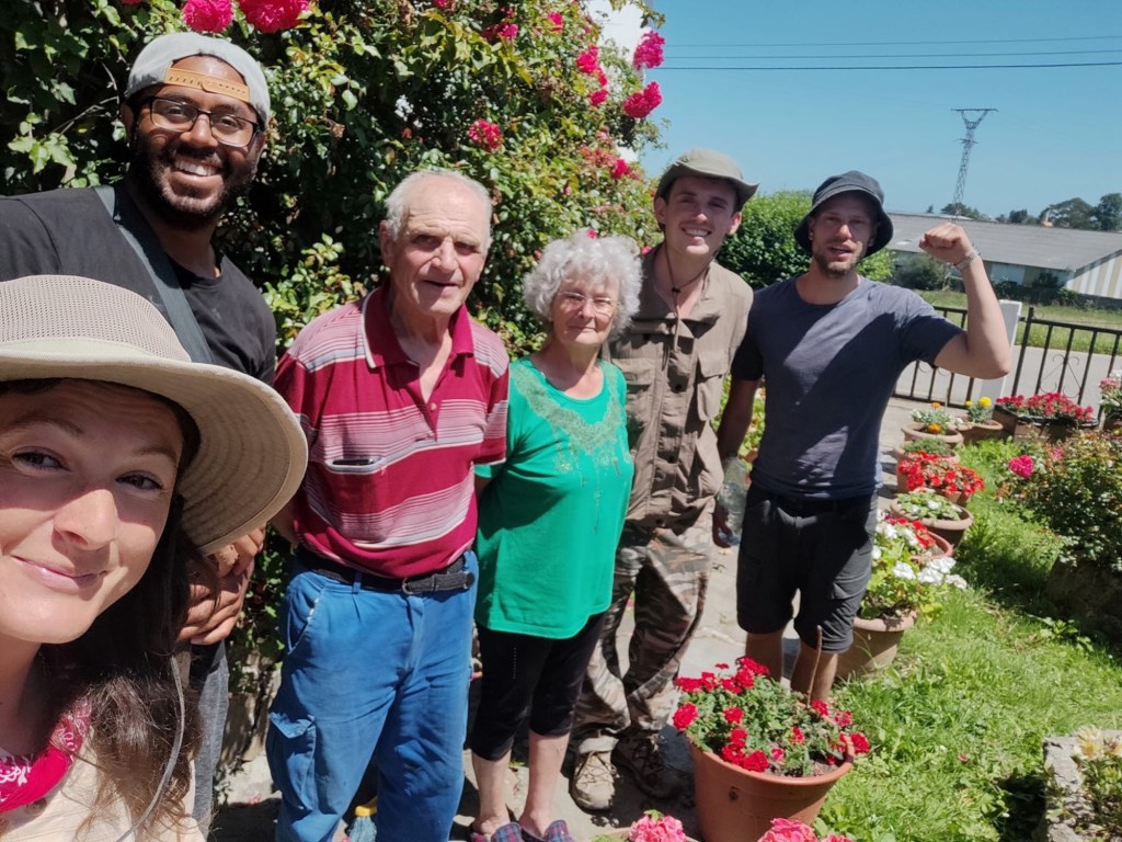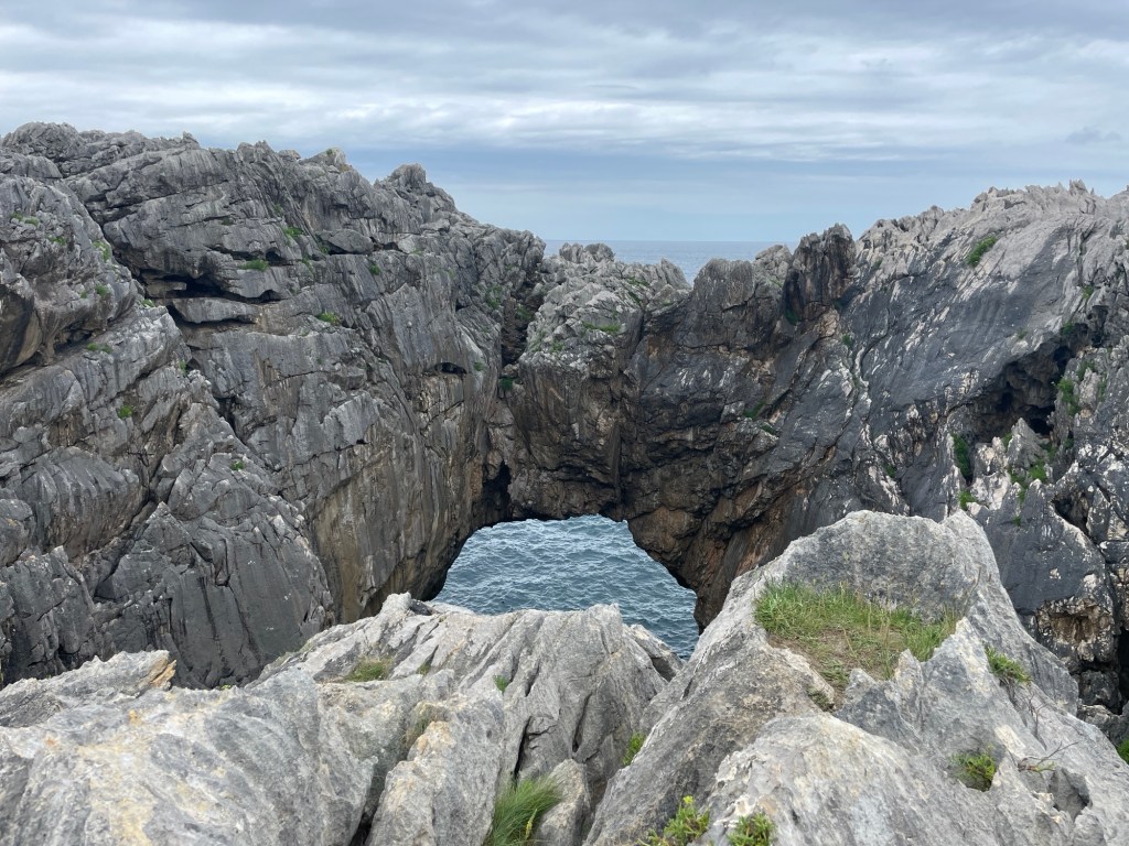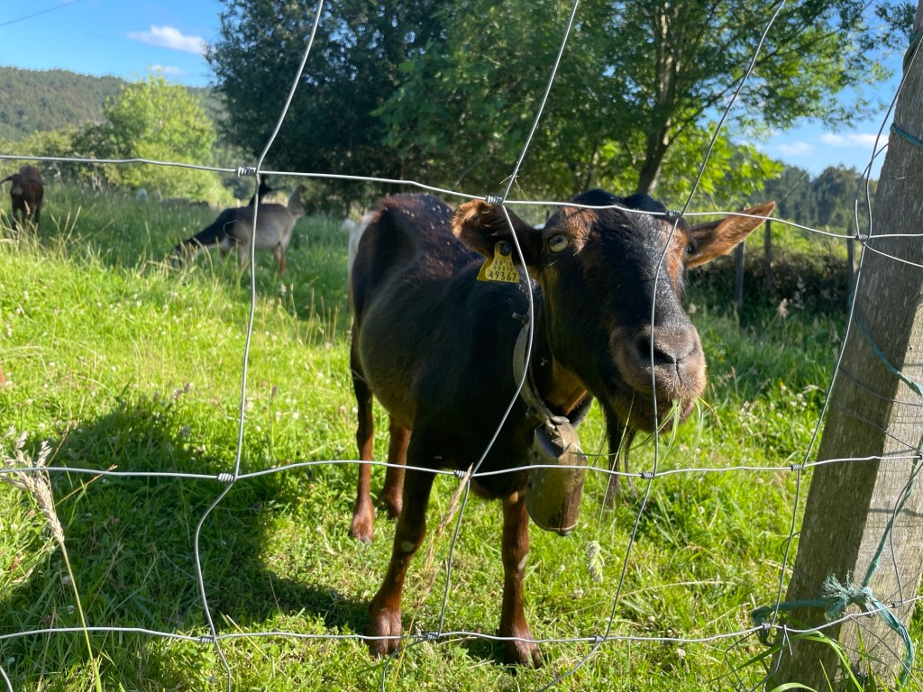 The landscape is so fucking beautiful, it’s misty and there is the grandness of the ocean. I passed by farms with cows !! and sheep and goats. The birds sing and keep me company. At the top of the hill 1 hour from Orio still, i met a pilgrim and a man with a wheel barrow who invited us to stay.